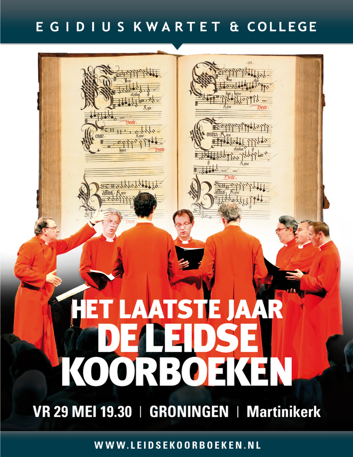 In september 2016 the Egidius will be performing four concerts with the most beautiful pieces out of the 6 Leiden Choir Books . This is definitely the last year during which there will be performances of the Choir Books .
