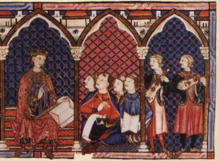 Dit manuscript met Cantigas de Santa Maria is de grootste collectie éénstemmige liederen uit de Middeleeuwen, en bevat liederen die pelgrims zongen op hun weg naar Santiago de Compostella. Koning Alfonso X El Sabio stelde het manuscript samen, schreef misschien een aantal teksten, en liet het uitgeven, compleet met kleurrijke afbeeldingen van muzikanten die de meest uiteenlopende muziekinstrumenten bespelen.