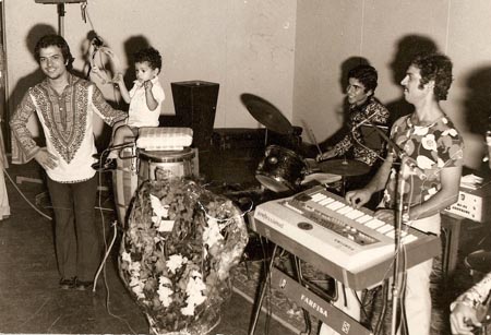 Op de foto: de musicerende familie Maddah – Babak (met tamboerijn) zelf is hier 2 jaar oud