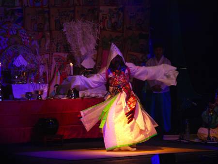 Koreaanse Shamaan in een gut ritueel. Gezien: zondag in de club 13.00u.