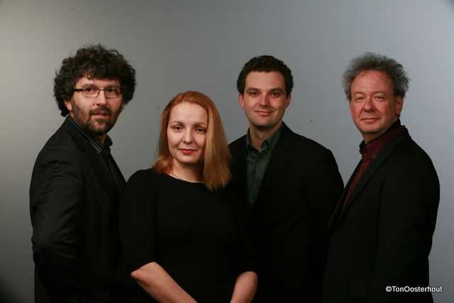 op foto Violini Capricciosi met (vlnr) Igor Ruhadze, Daria Gorban, Mark Dupere en Vaughan Schlepp