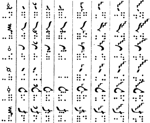 afbeelding onder: een fragment van Dositheos’ byzantijnse Braille-code