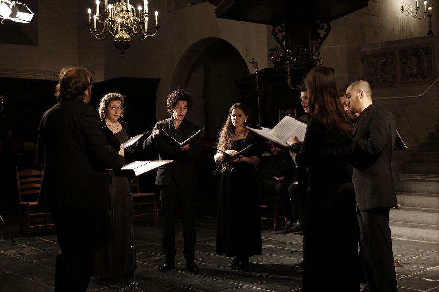 Op foto midden: Capella Sancta Maria tijdens het concert in de Pieterskerk in Utrecht (foto: Juan Sebastián)