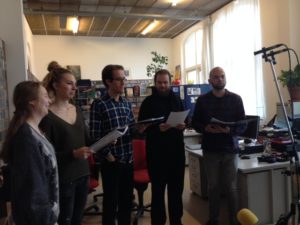 0:15 Ensemble Vlechtwerk geeft een interview en zingt live.