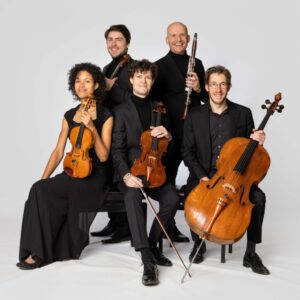 Nicolas Dupont, viool, Noémi Tiercet, viool, Sander Geerts, altviool, Sébastien Walnier, cello, Roeland Hendrikx, klarinet