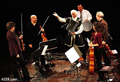 Misschien wel zevenhonderd jaar oud , dus niet echt jazz, is de Moegam Bejati Sjiraz die de bekende garmon-speler Rahman Asadollahi bewerkte voor het Kronos Quartet (foto). Garmon is Azerbeidzjaans voor accordeon.