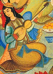Uit dik hout kun je ook weer de subtiele klank van de tar laten opklinken, de Perzische luit die etymologisch verwant is aan sitar en gitaar (afbeelding rechts). We laten u een reeks horen van moegam en tar met drie werken van Hasán en Azér Rezájev en Tofig Góeliejev. Eerst de moegamrapsodie ‘Sjagarga’ van Hasán Rezájev uit 1957, daarna ‘Gajtagi’ met tar van Azer Rezájev uit 1994, en daarna ‘Gajtagi’, Dans voor piano en orkest uit 1958 van Tofig Goeliejev.