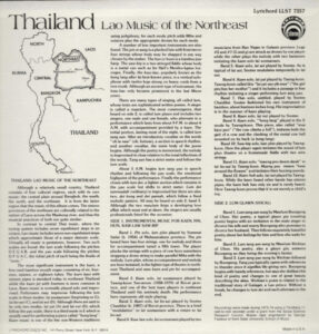 Wij zijn begonnen met een opname van de pas overleden Terry Ellis Miller, een Amerikaanse etnomusicoloog, die zich toegelegd had op het mondorgel en de muziekstijlen van Isan en Laos. Hij is belangrijk geweest voor de populariteit van deze muziek en heeft ook menig westers muzikant geïnspireerd om zelf het mondorgel te gaan bespelen. Wij gaan verder met twee andere mondorgel opnames van hem. Eerst La Noi waarvan de naam verwijst naar de toonsoort van de melodie en Meng Pu Tom Dok, de bijen bij de bloemen.