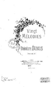 ‘Mélodies’ Théodore Dubois . Zijn muziek omvatte vele religieuze werken, twee balletten, vier oratoria, zeven kamermuziekwerken, veertien orkestwerken (waaronder drie symfonieën) en een kleine 100 liederen. Het grootste deel van zijn muziek wordt niet meer gebruikt. Zijn Toccata in G voor orgel schijnt wel een repertoirestuk te blijven. Hij heeft een blijvende invloed gehad op het onderwijs, met zijn zes theoretische werken over contrapunt en fuga en over harmonie , die nog steeds worden gebruikt. En zijn liederen? Luistert u maar! Speellijst: