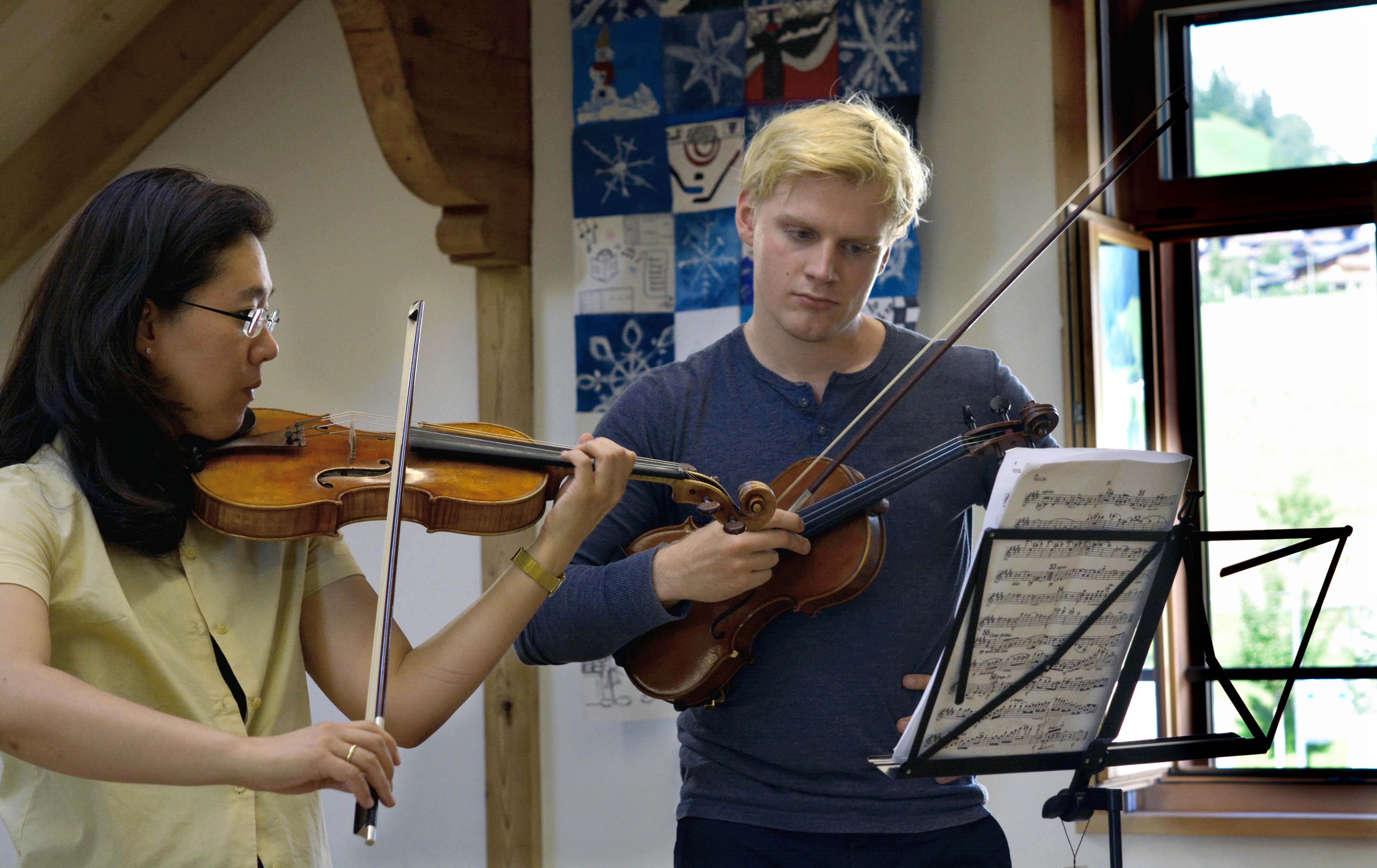 Voor de rest namen ze ook nog de violist en "Klankcafé-ontdekking" Kilian van Rooij (23) mee, die een masterclass viool volgde bij de Gstaad String Academy.