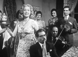 Huda Sultan singing to Riad El-Sunbaty (from the film Habib Qalbi (love of my heart) ,1952).