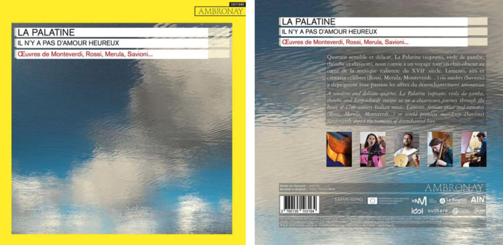 Uitvoerenden: Ensemble ‘La Palatine’: Marie Théoleyre, sopraan. Noémie Lenhof, viola da gamba. Nicolas Wattinne, theorbe. Guillaume Handenwang, klavecimbel en muzikale leiding